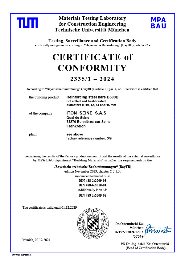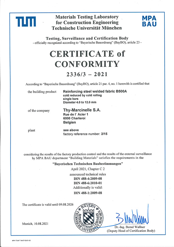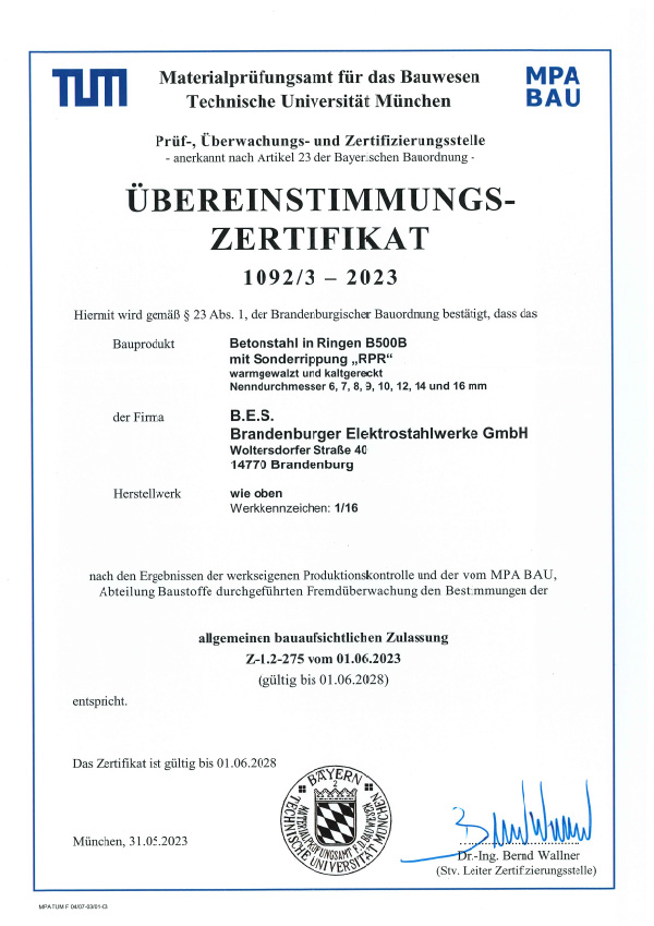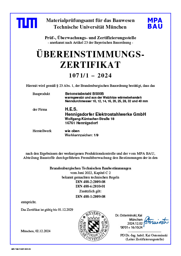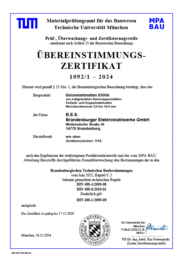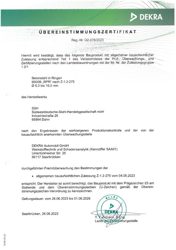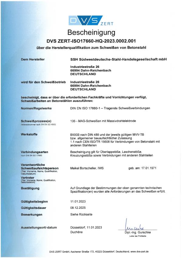 Alle Produkte der SSH mbH unterliegen einer strengen Überwachung durch akkreditierte Prüfinstitute. Wir sind zertifizierter überwachter Betrieb gemäß den gültigen Normen für Betonstahl.
