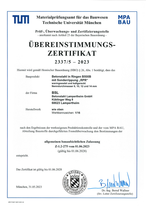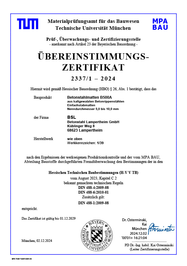 ÜE-Zertifikat BSL Matten
